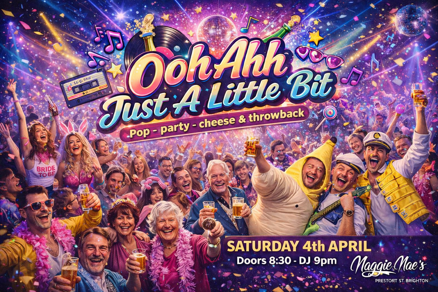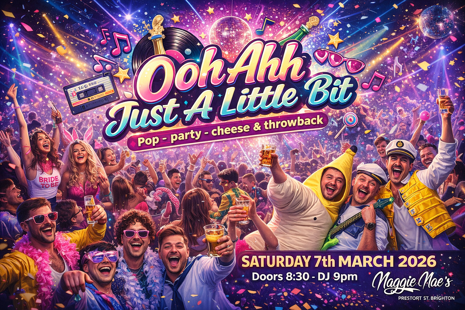 THIS IS A SEATED/TABLE TICKET (£11) The ‘Ooh Ahh Just a little Bit’ Party is BACK for 2026! Come and join us on Saturday 7th March 2026 at Maggie Maes, Brighton!
