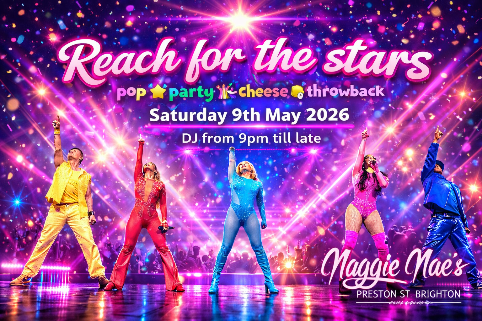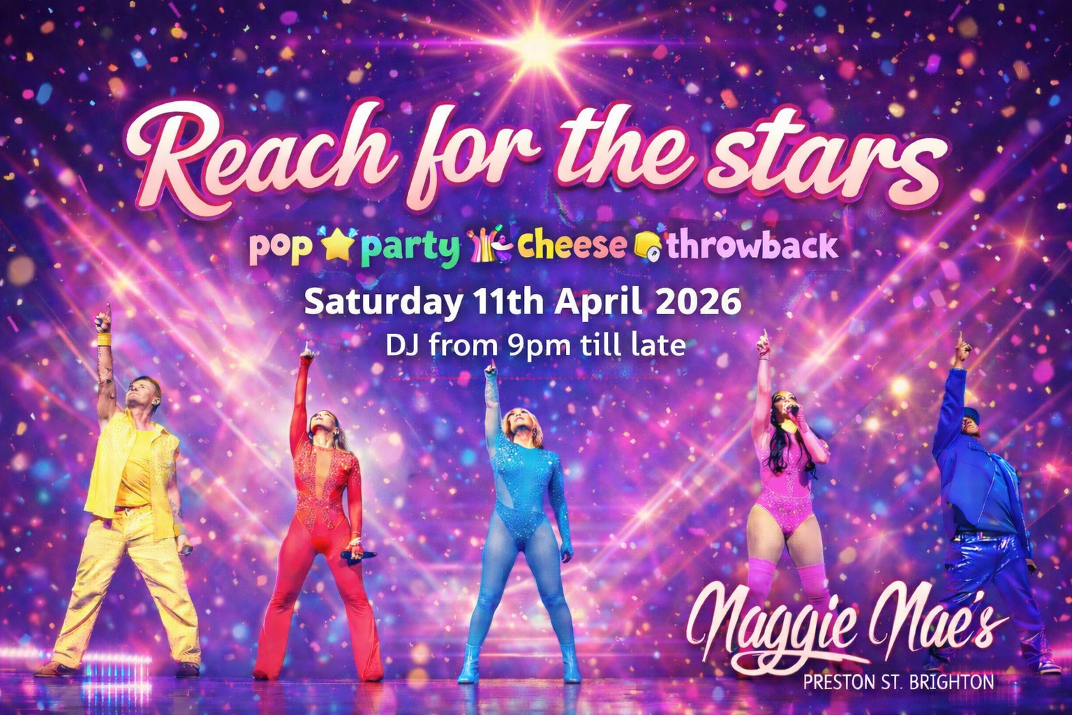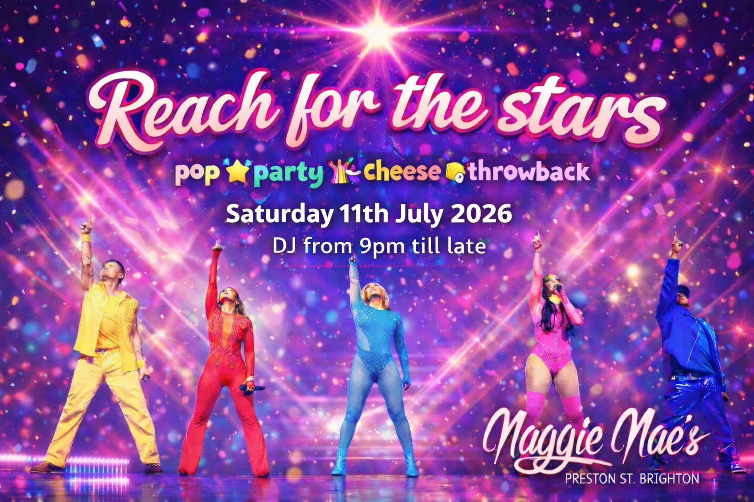 So… REACH FOR THE STARS is BACK for 2026 on Saturday 12th September 2026 for another night of Pop, Party, Throwback & Cheese!