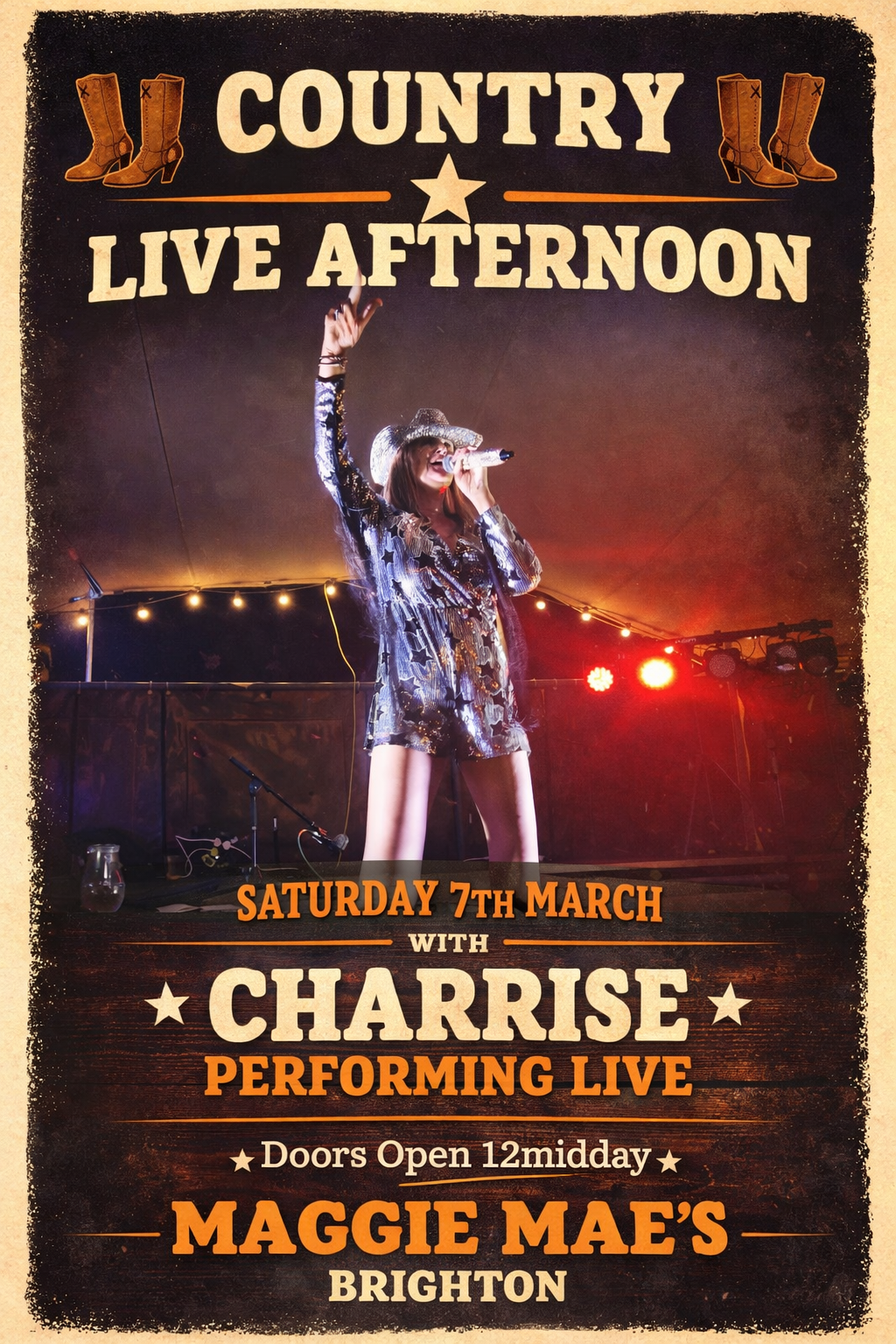 Get ready for an afternoon filled with the heart and soul of country music as Charrise takes the stage for her outstanding solo “Country Classics” live show! Expect a feel-good mix of timeless country hits, powerful vocals, and the warm, uplifting atmosphere Maggie Maes is known for.