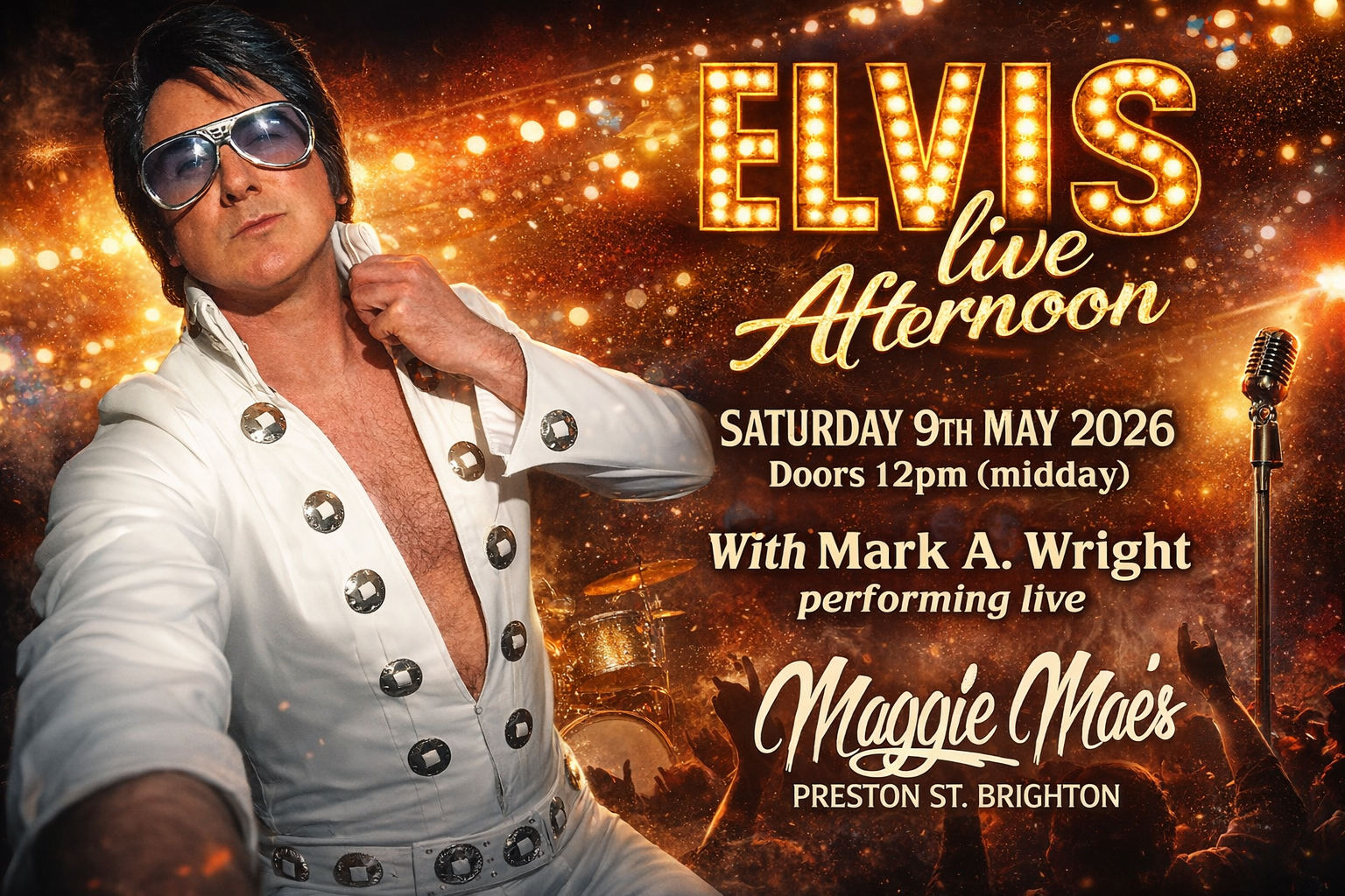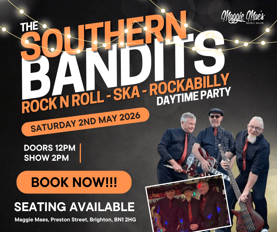 Get ready to twist, jive, and rock the afternoon away at our Rock ’N’ Roll Daytime Party at Maggie Mae’s, Brighton on Sunday 16th August 2026!