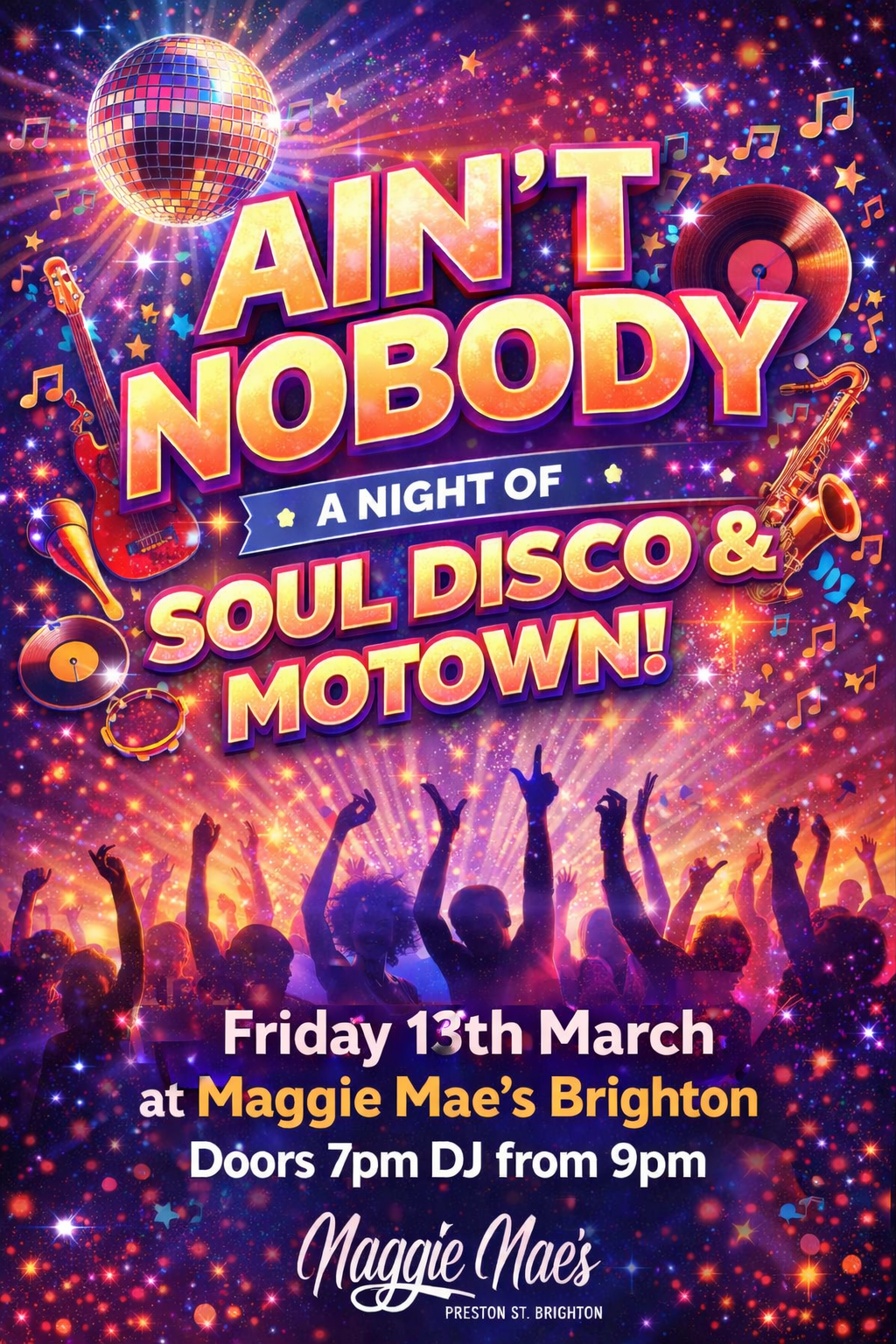 🌟 Get Ready to Groove! 🌟 Join us for Ain’t Nobody, a spectacular night dedicated to the BIGGEST Soul & Disco Anthems Ever! Step into the groove and let the timeless