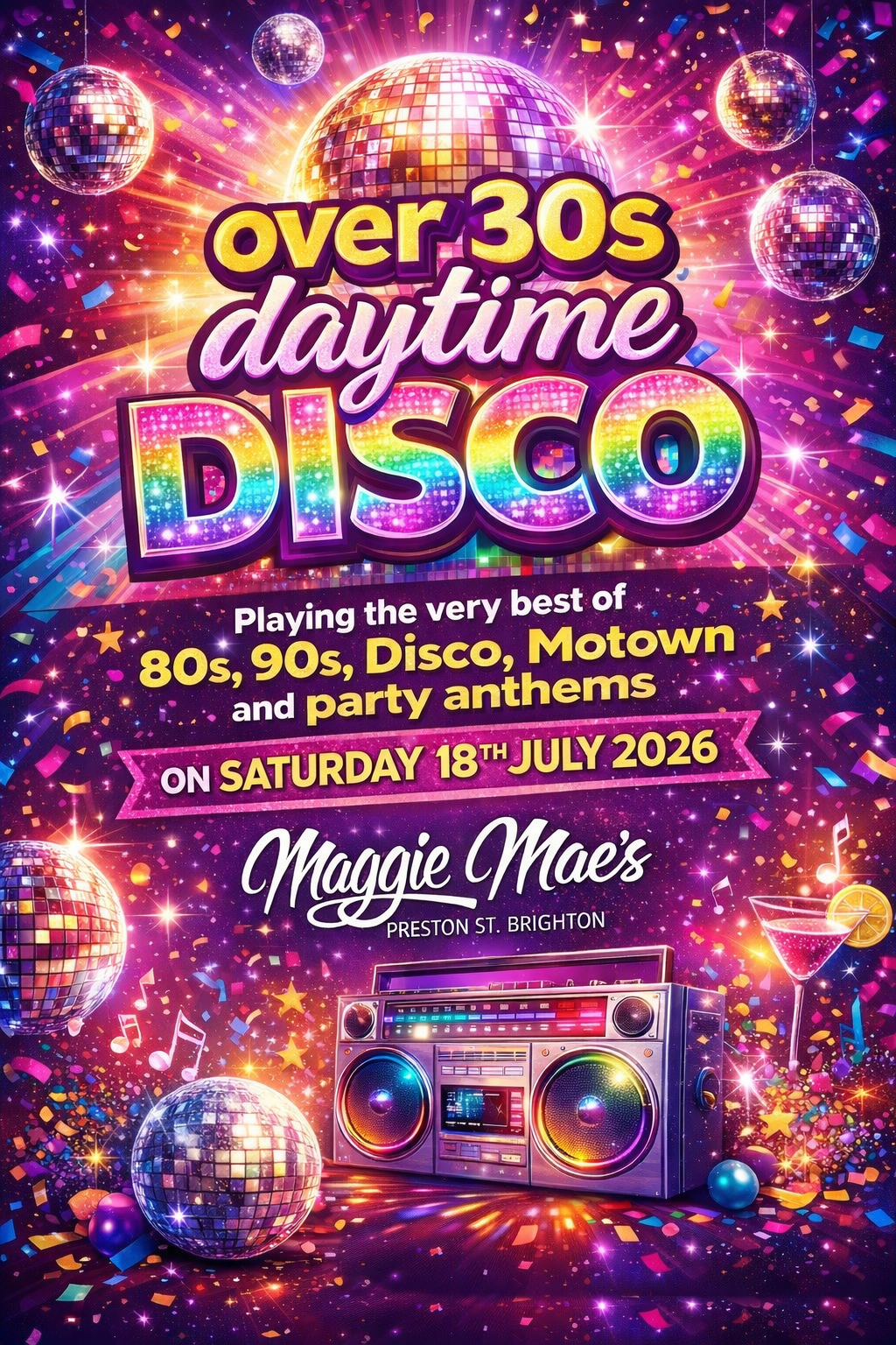 Get ready to step back in time for a night of neon lights, big hair, and all the greatest hits of the 80s at Club Tropicana! Maggie Mae’s is bringing the ultimate retro party to Brighton, and you’re invited.