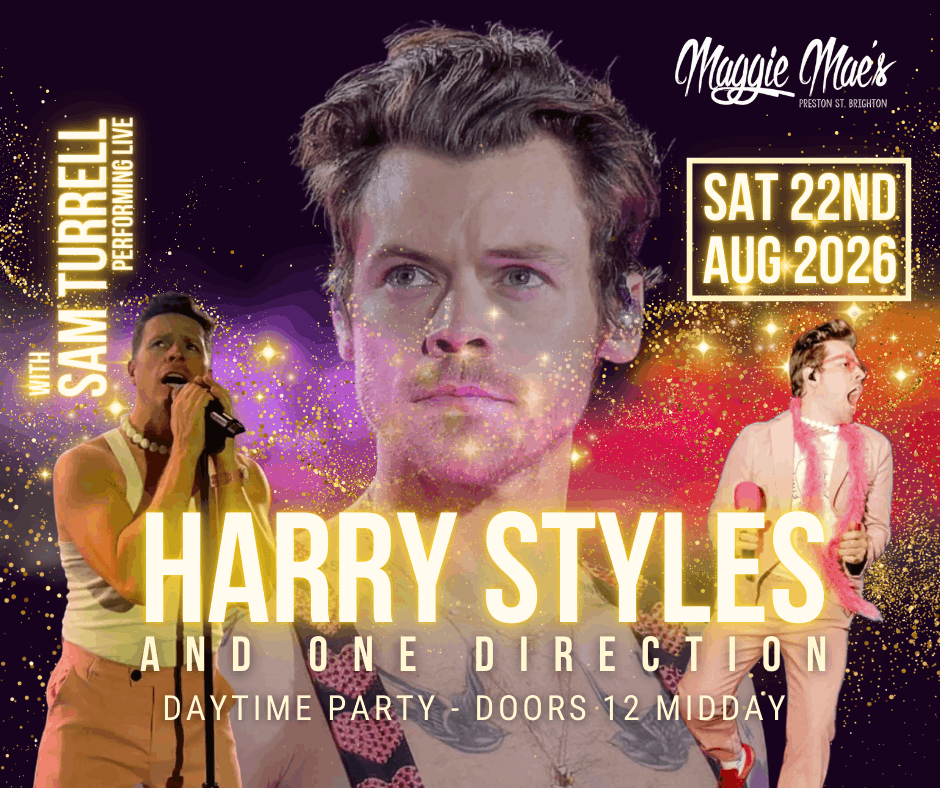 Calling all Stylers and Directioners 💖 Get ready for the ultimate Harry Styles & One Direction daytime party at Maggie Mae’s, Brighton — packed with sing-along anthems, pop nostalgia, and feel-good vibes from midday till late afternoon.