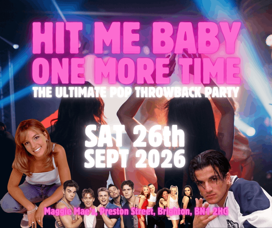 The ‘Ooh Ahh Just a little Bit’ Party is BACK for 2026! Come and join us on Saturday 7th March 2026 at Maggie Maes, Brighton! Expect the usual big party bangers plus some cracking surprises from the 80s, 90s & 00s!