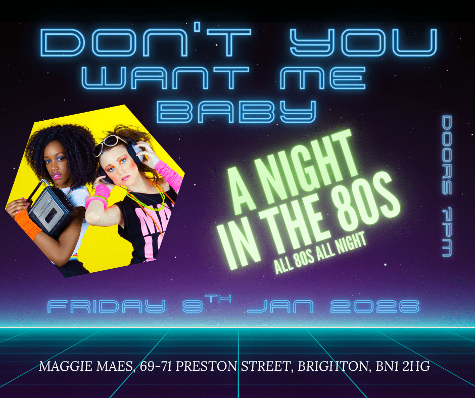 Step back in time and relive the magic of the 80s at Maggie Mae’s, Brighton, on Friday 9th Jan 2026! 🌟