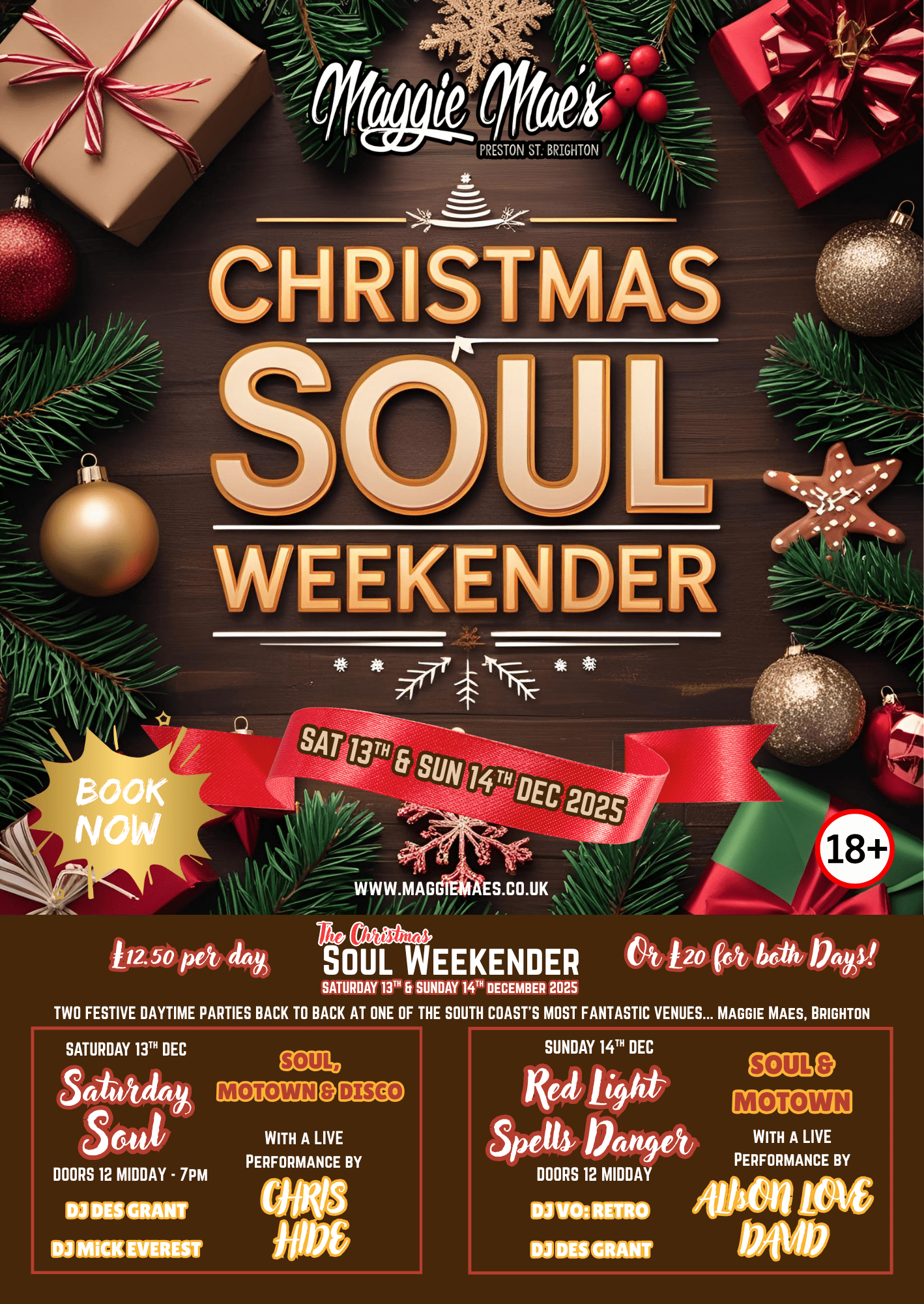 Join us on Friday 24th October 2025, at Maggie Maes, Brighton, for a soulful Musical journey featuring timeless Soul, Disco & Motown Classic’s setting the perfect vibe for a Friday Evening.