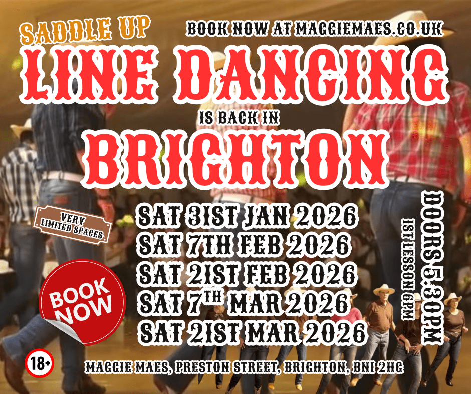 Saddle Up: Line Dancing Night at Maggie Mae’s – Saturday 31st January 2026 – 5.30pm Get ready to kick up your heels and dance the night away at Saddle Up, Brighton’s